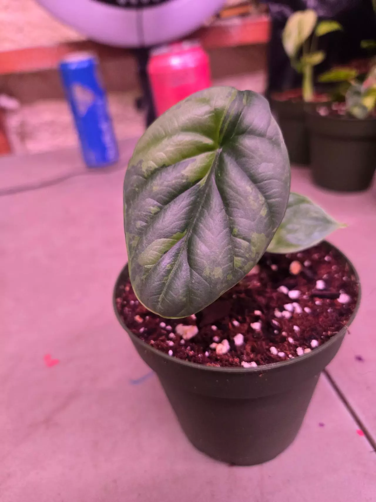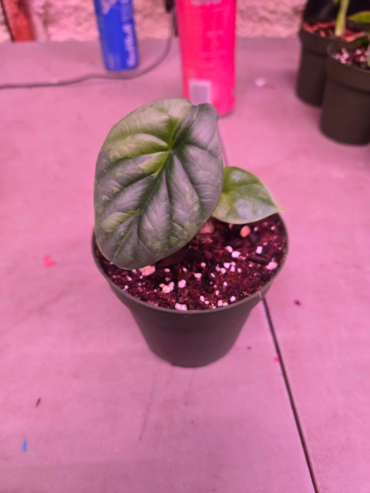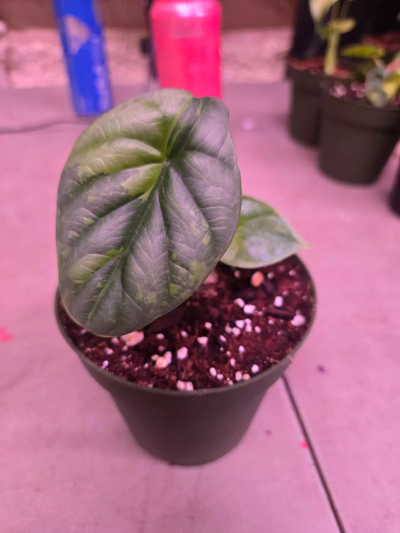 GREEN ON GREEN SILVER DRAGON ALOCAISA VARIEGATED WITH PUP ships 2nd air and insulation