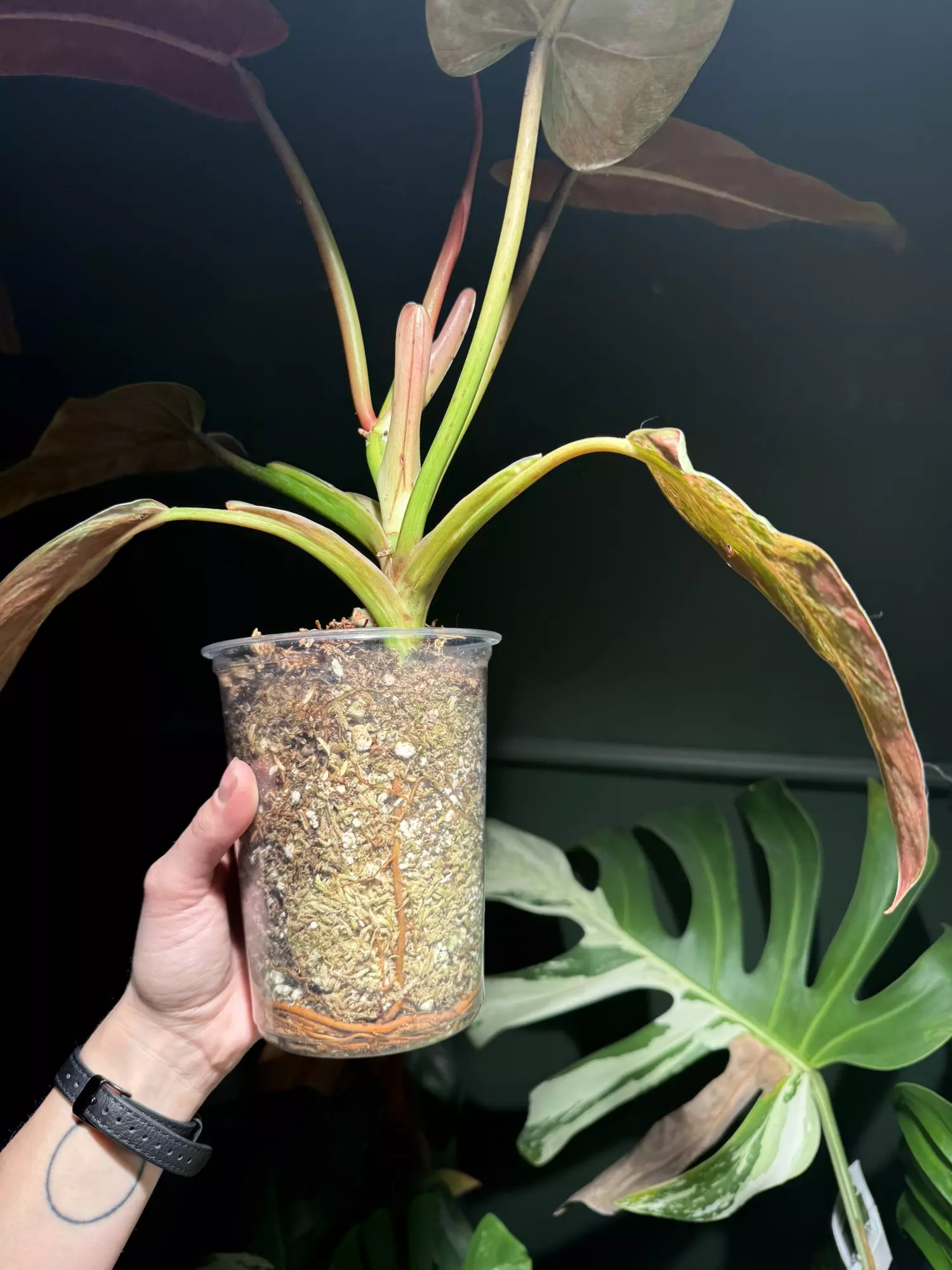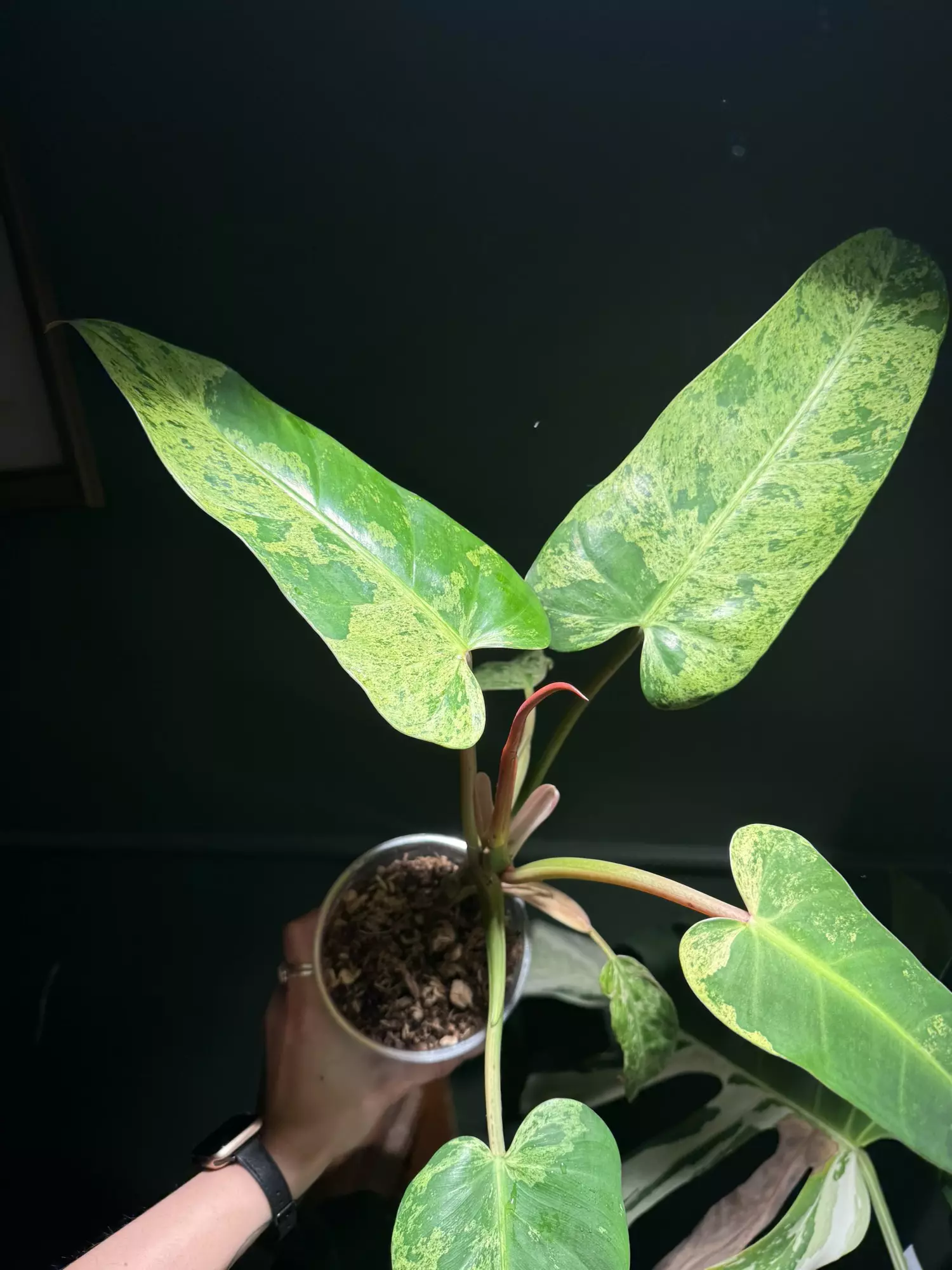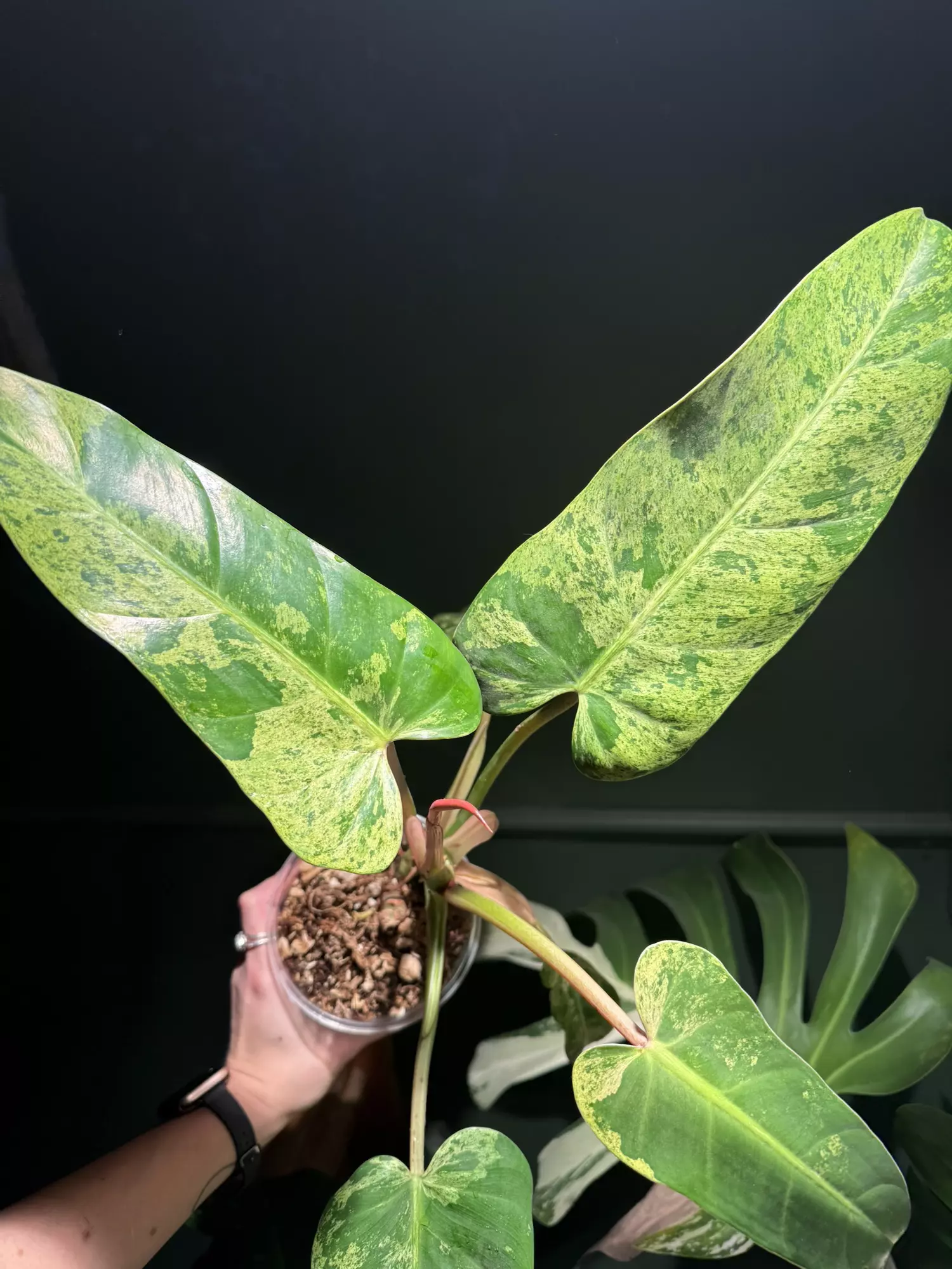 Mother plant. Very well rooted, large Mint Whipppe Way. Has a bonus active growth point closer to the soil. Strong & fast growing philodendron — growing in ambient humidity (~30%).