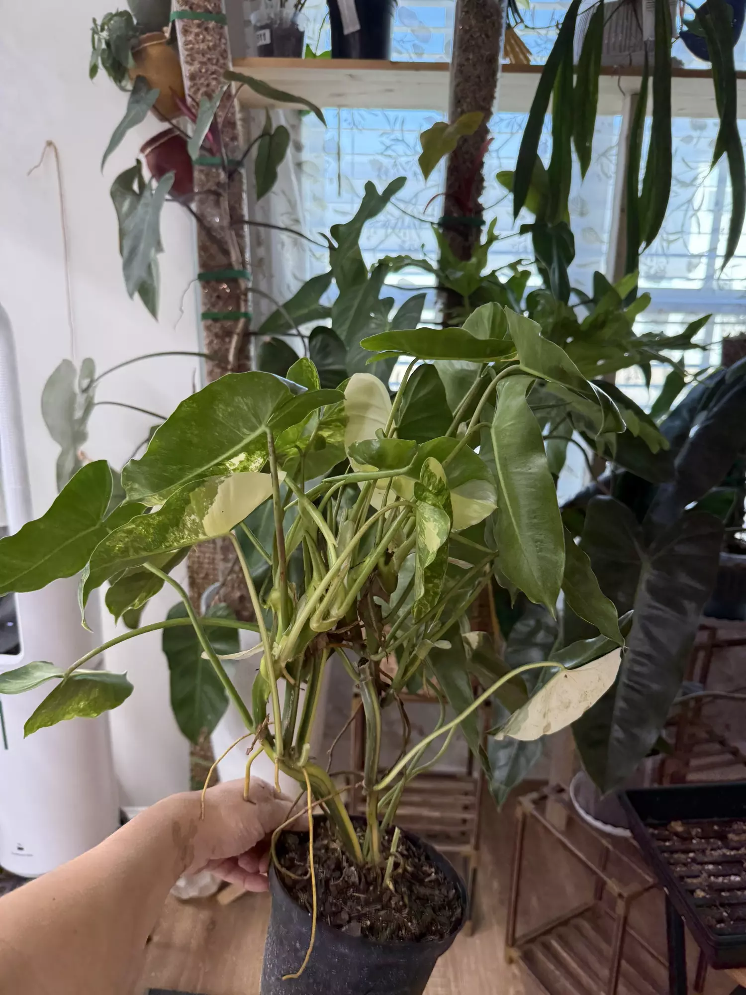 in a 6” pot and needs a larger pot. Stripey stems. MUST purchase heat pack and insulation add on. I will not ship without. this guarantees your plant arrive alive and without cold damage