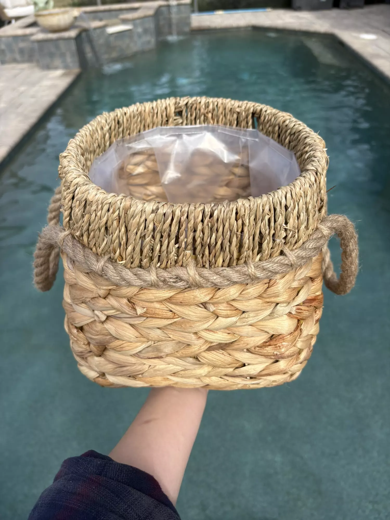 7 inch basket planter lined with plastic. This will ship the following weekday after purchased.