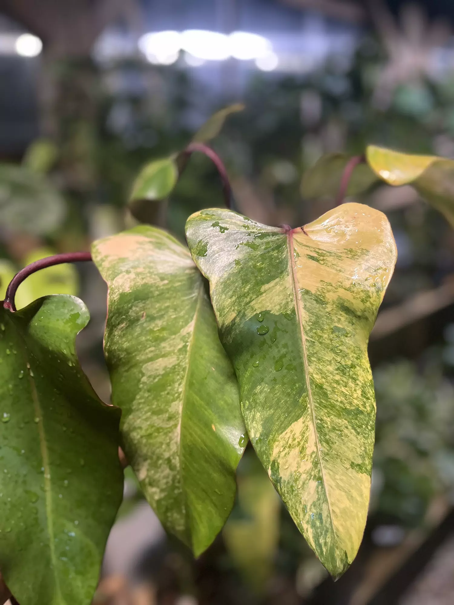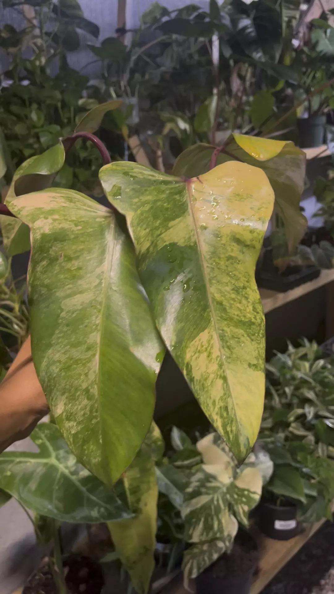 Bright, high-contrast Philodendron Strawberry Shake with gorgeous marbling across every leaf.