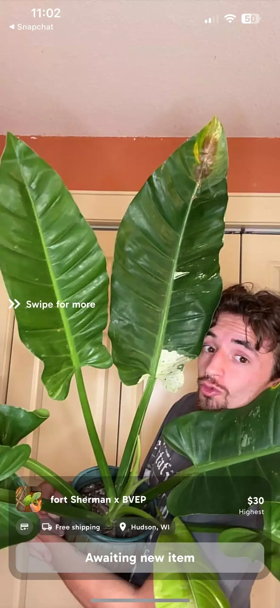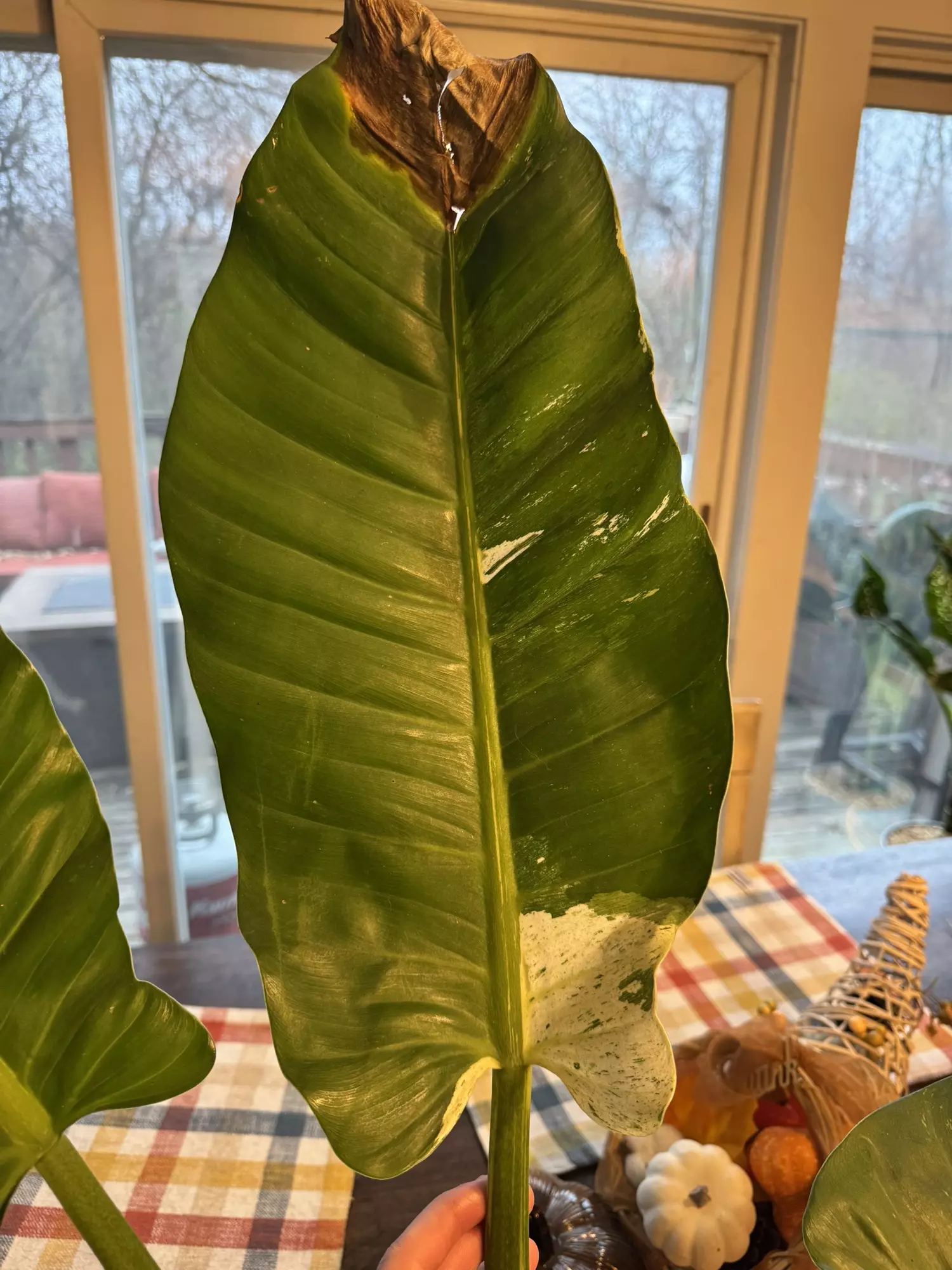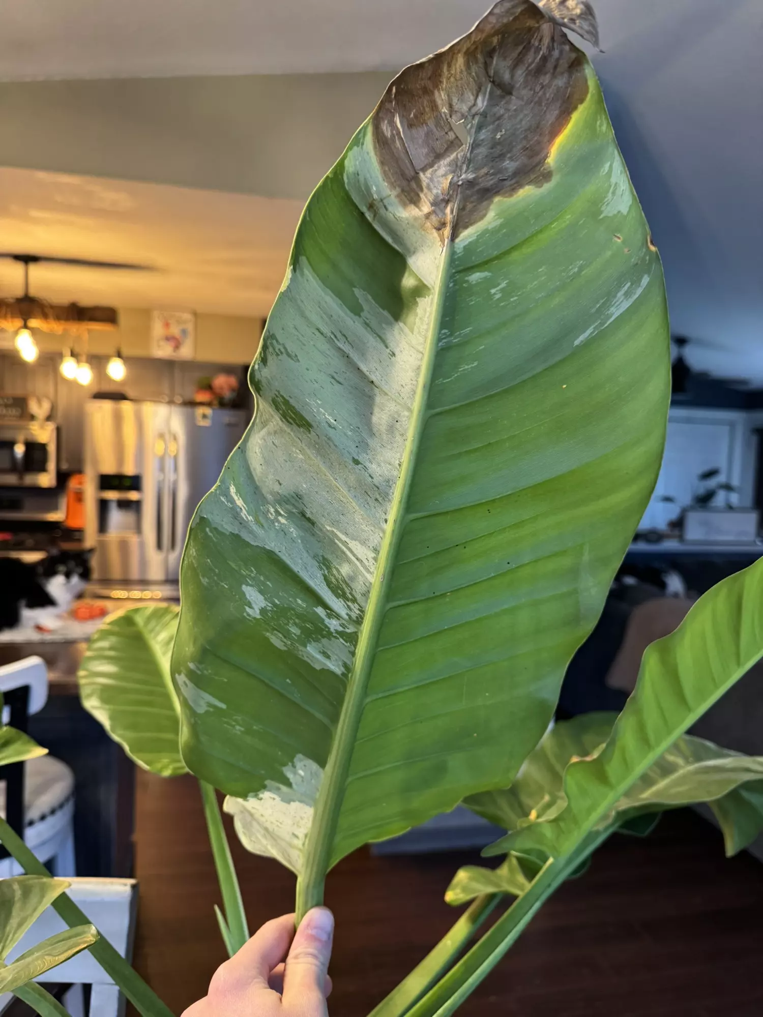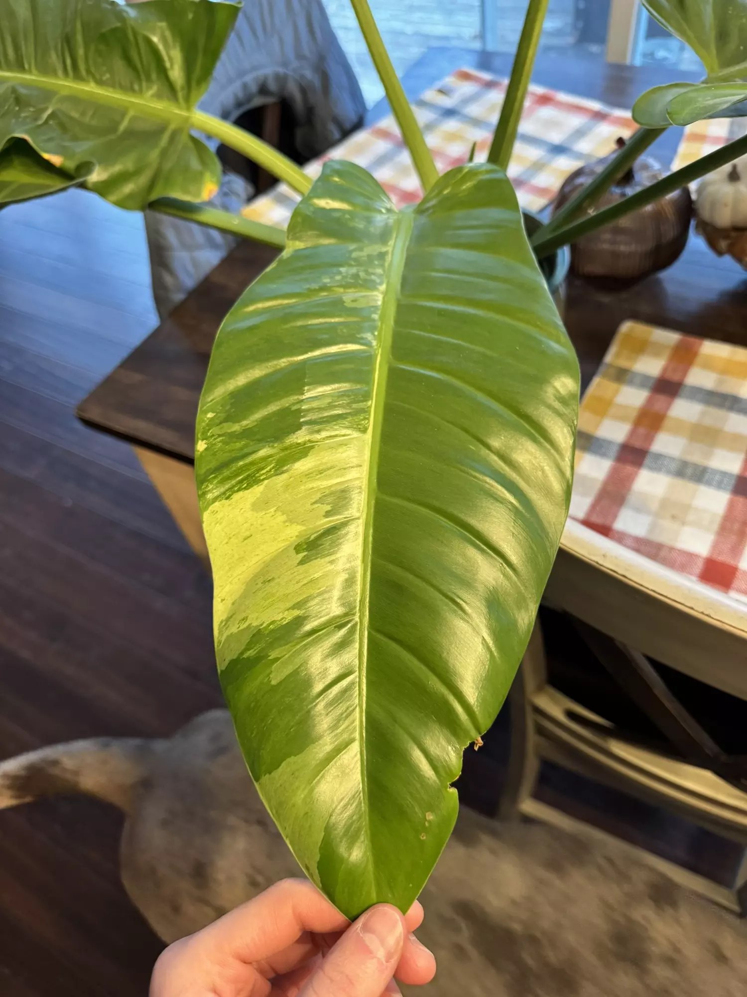 giant Variegated philo orlando, great color with just a little bit of cosmetic damage on the tips of 2 leaves