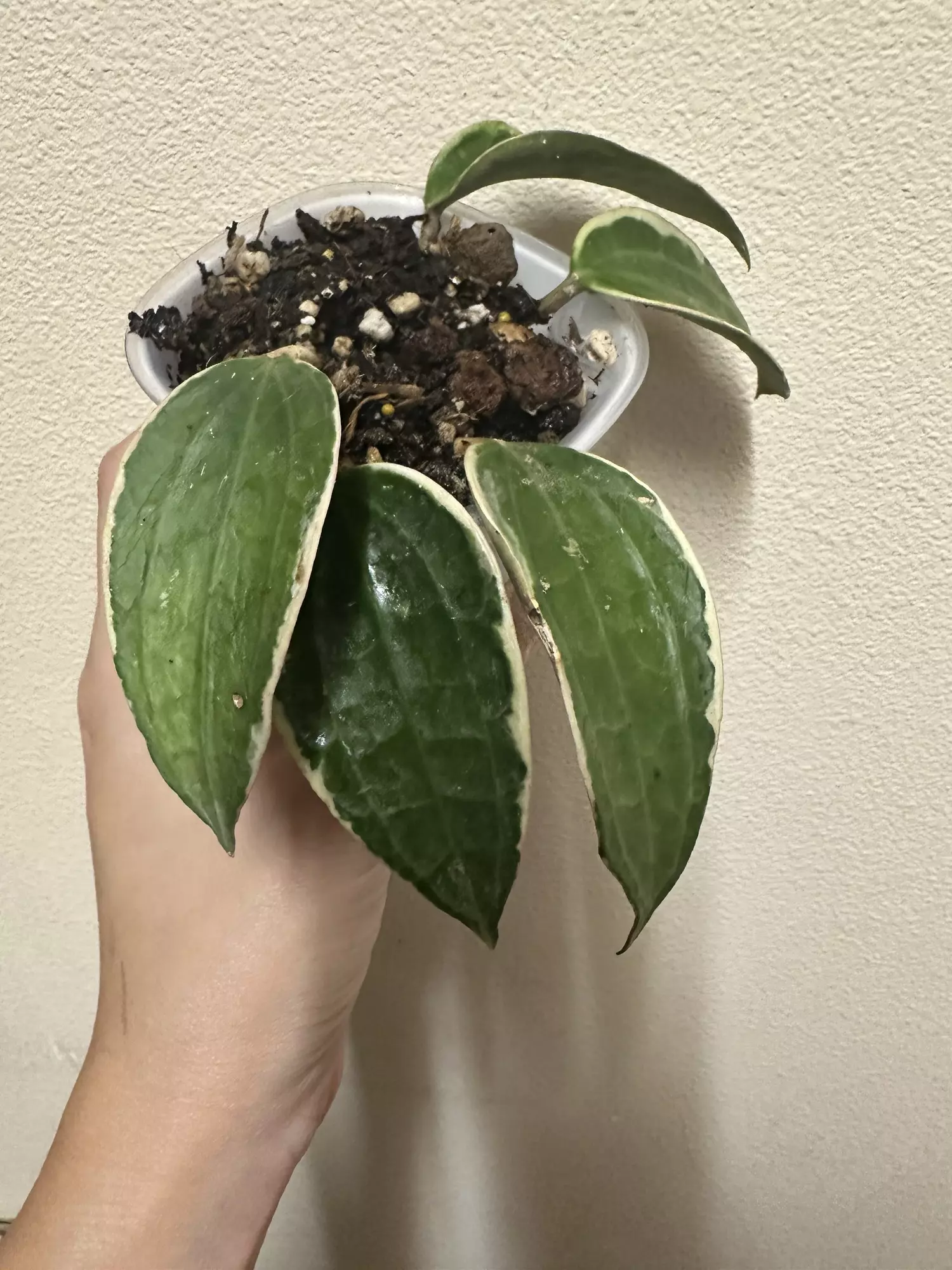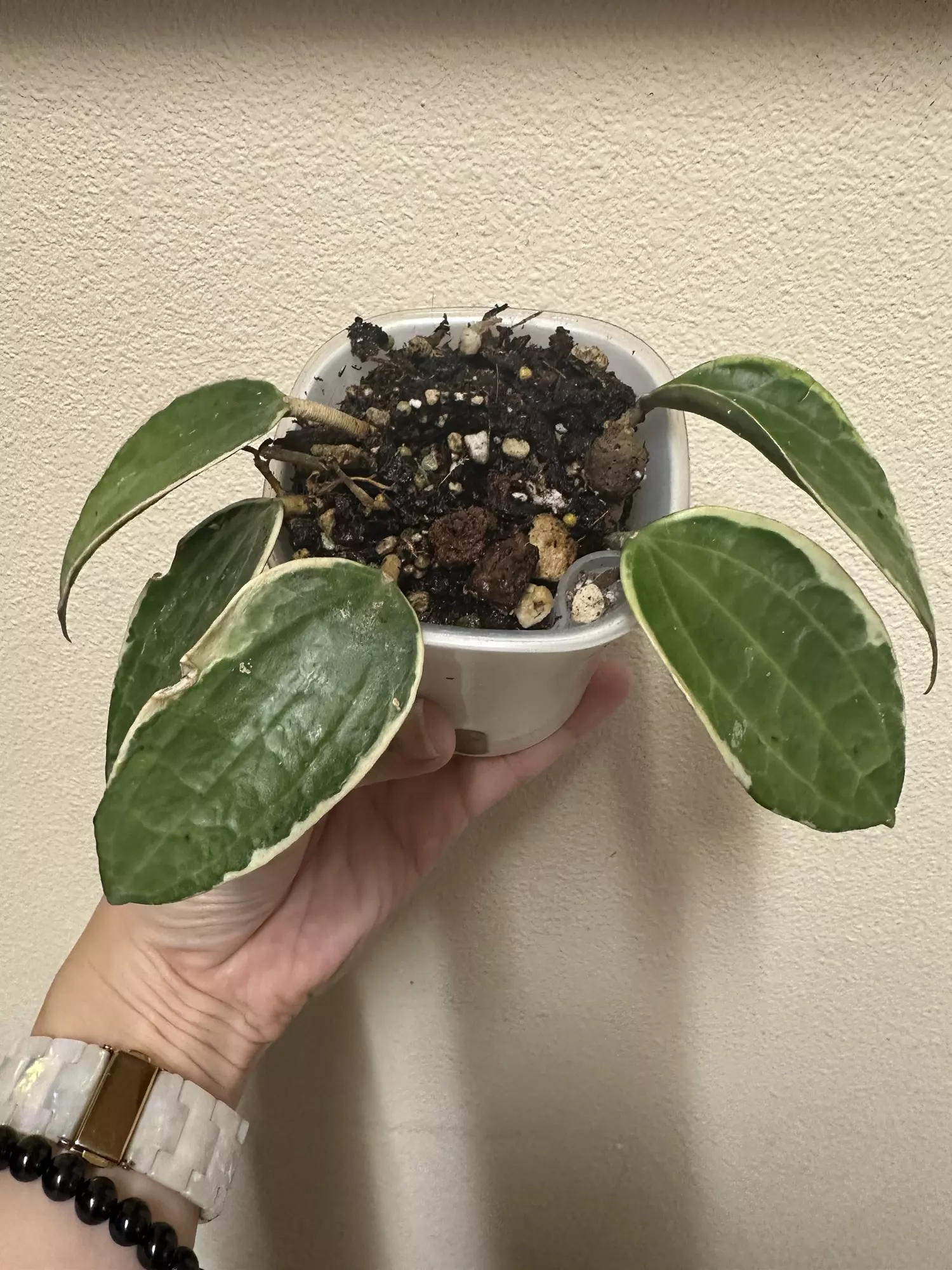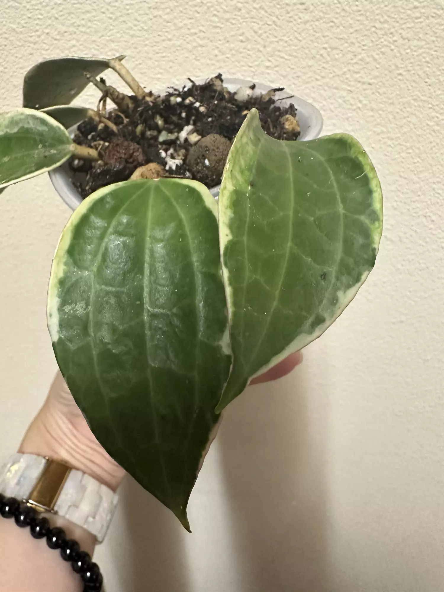 Hoya macrophylla albomarginata in self watering planter