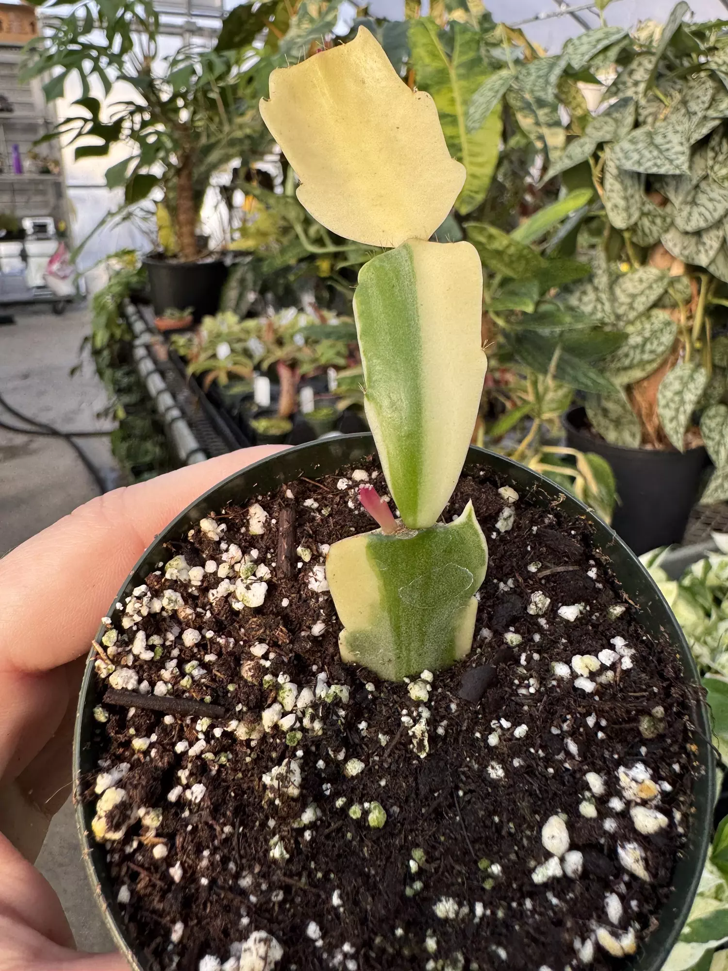 pot size: 3.5” Schlumbergera russelliana ‘True Christmas Cactus’ variegated. second picture is of the bloom from the parent plant.