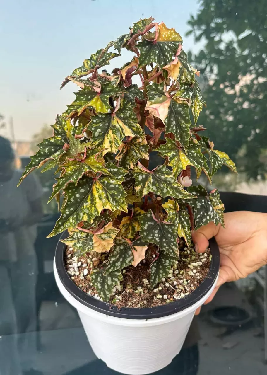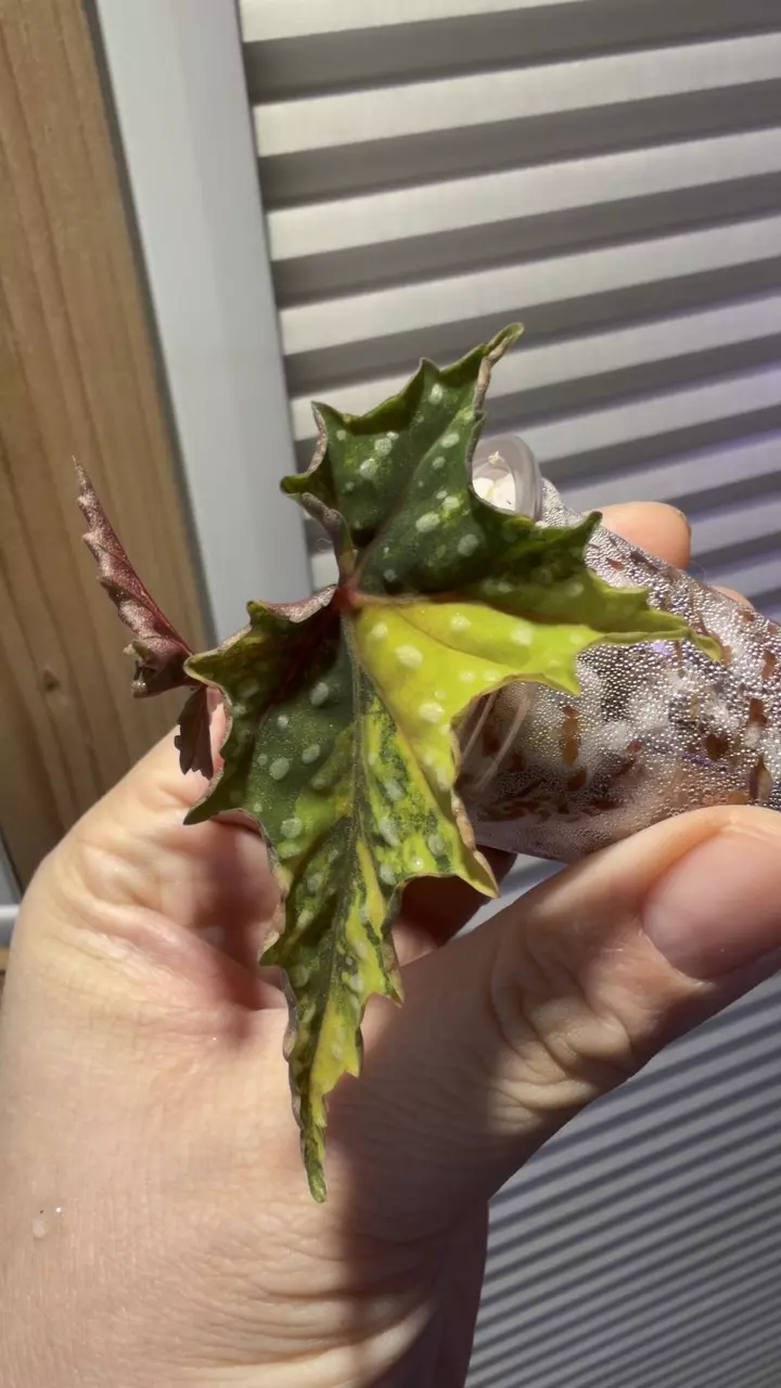 Freshly imported top cut. one of the best crop! mother plant in the last photo. 🫶🫶🫶 AI description of Begonia 'Izumo no Kiraboshi' is a rare, variegated Japanese hybrid begonia known for its highly ornamental foliage. Its name roughly translates to "twinkling star of Izumo," referring to the star-like patterns on its leaves.