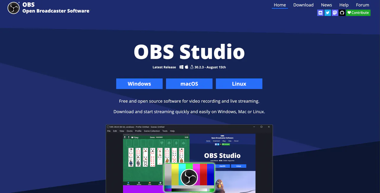 Visit the official OBS website, and select your operating system (Windows, macOS, or Linux) to download the software.