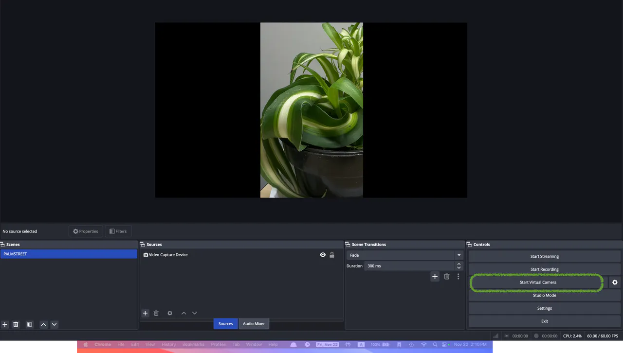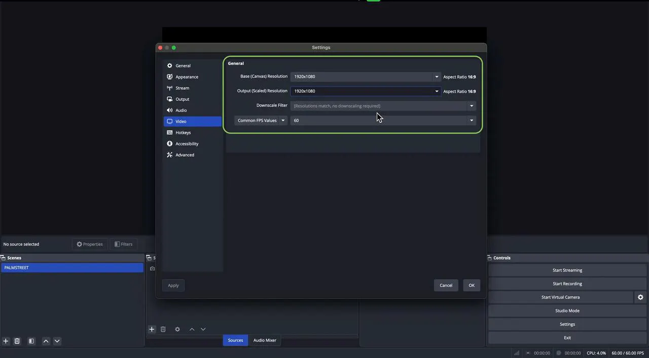 This step is essential to ensure your OBS canvas is properly displayed on your Palmstreet stream. The primary source you just created will serve as the foundation for all additional sources you include. It provides a clear view of what will appear on your stream.