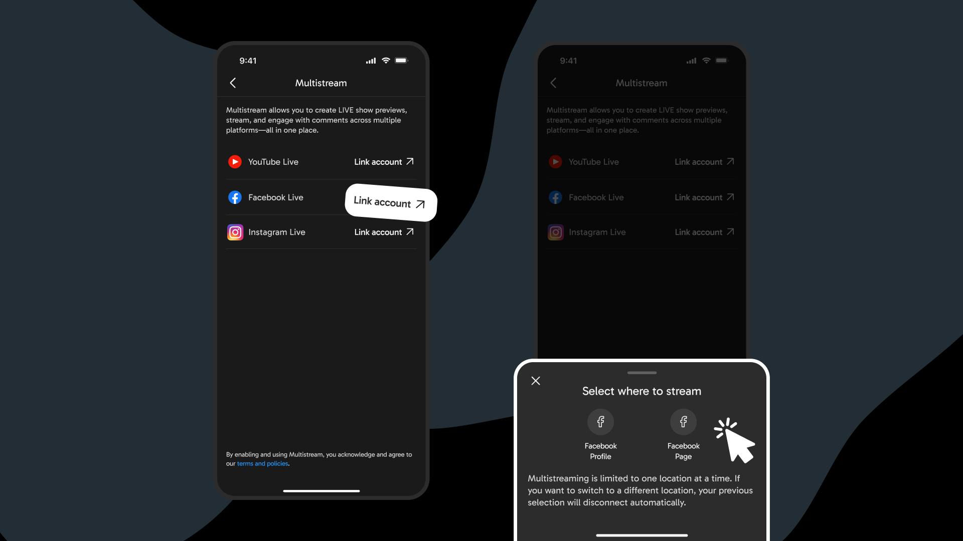 No — multistreaming can only be set up at the time you schedule your LIVE show. Once a LIVE show has been created, there is currently no option to go back and edit or connect platforms afterward. Be sure to enable multistreaming during the initial setup process.