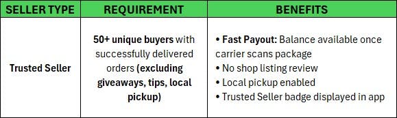 Effective November 26, 2025, we've implemented enhanced requirements for our Trusted Seller program to better reflect the experience and reliability that this badge represents. Starting December 31st, sellers who don't meet the new requirements will see their Trusted Seller status updated in batches.