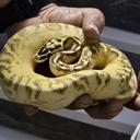 This female normal ball python(snake) that is HET for piebald is eating frozen thawed rat pups every 7 to 10 days.