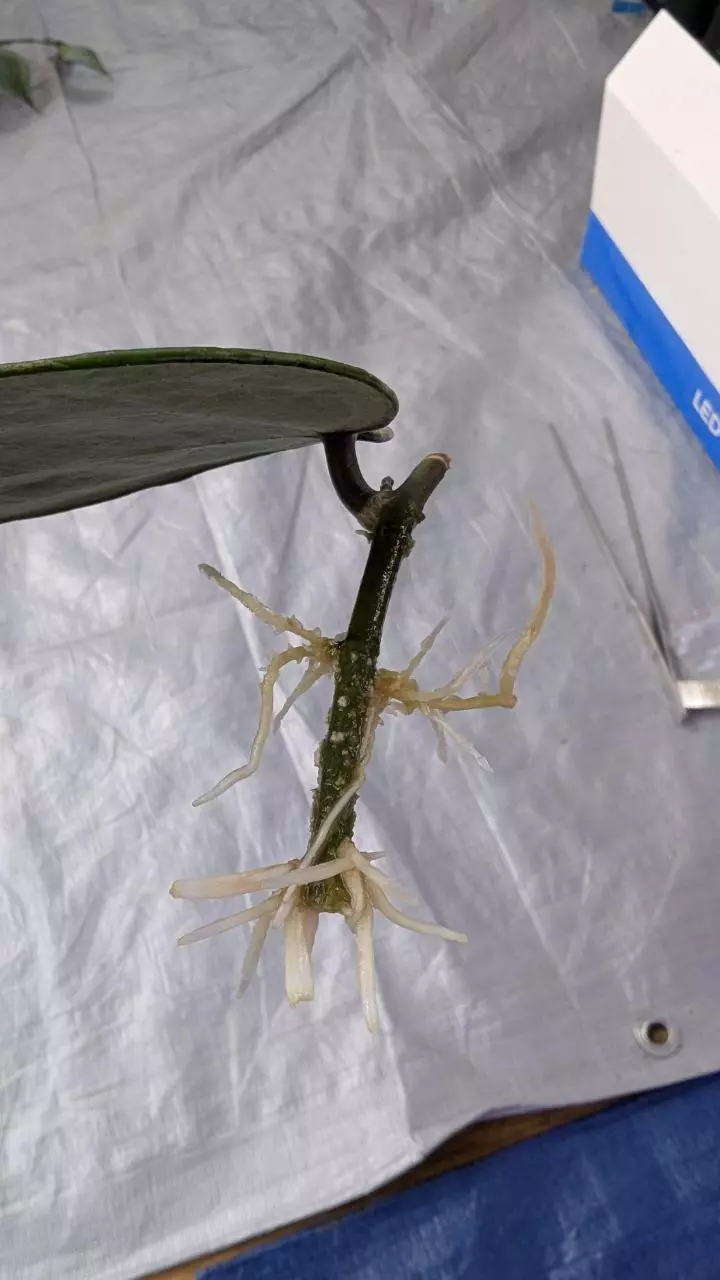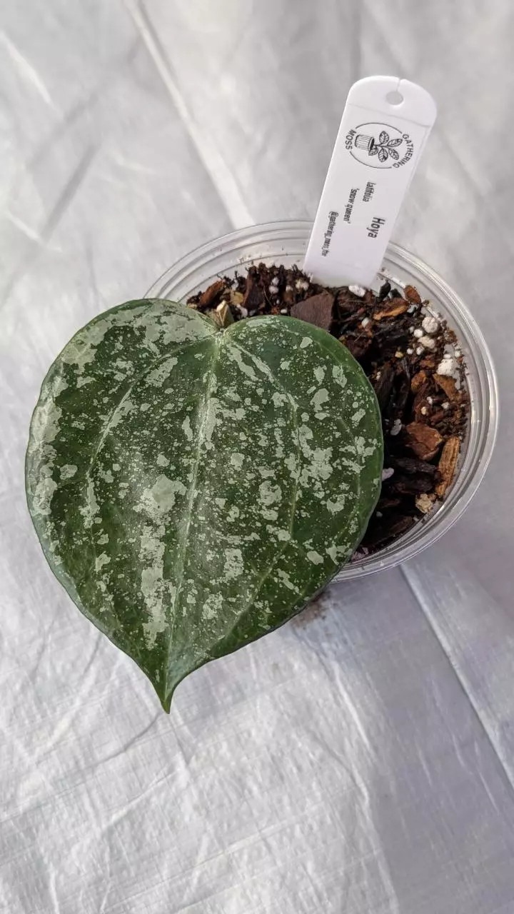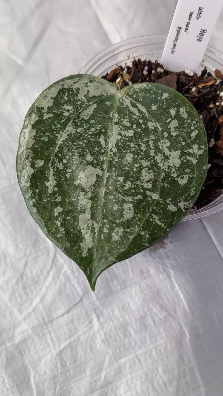 A stunning variegated form of Hoya latifolia, known for its large, round leaves splashed with creamy white and soft green marbling. Each leaf is uniquely patterned, resembling frosted snow — hence the name. This slow-growing beauty thrives in bright, indirect light and produces clusters of fragrant white blooms when mature. A true showpiece for any Hoya collection.